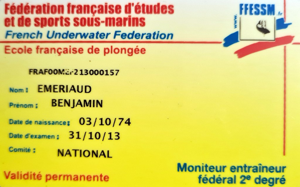 Je suis aussi moniteur fédéral ° de Pêche sous-marine FFESSM.