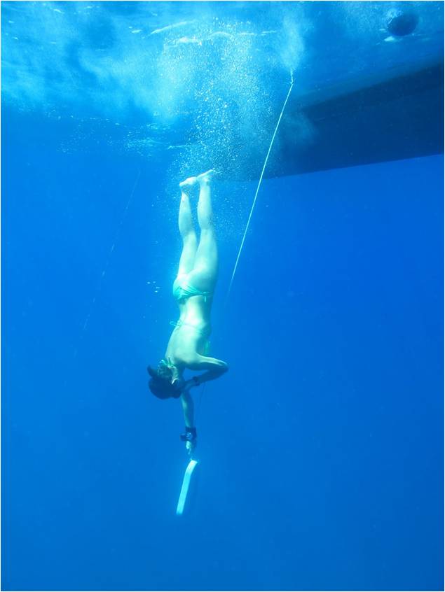 C’est une forme de poids variable ancestral. Les grecs utilisaient une pierre pour s’immerger profond en apnée afin de prélever des éponges. Cette discipline devenue sportive de nos jours a comme particularité de se pratiquer en maillot sans combinaison, mais aussi sans masque juste avec un pince nez. Il est aisé de comprendre que la première difficulté rencontrée par le plongeur sera la température de l’eau, très souvent glaciale en profondeur. Cette discipline permet de ressentir la glisse sur la peau et souvent un sentiment de liberté et de bien-être. Une expérience à ne pas rater !